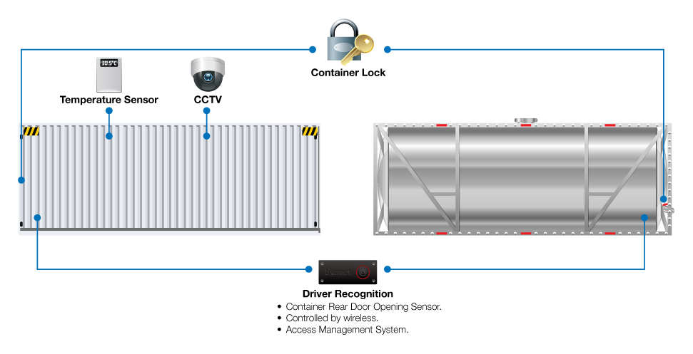 - Container Door can only open when it is at the right destination, with the right electronic Key and within the right period of time
